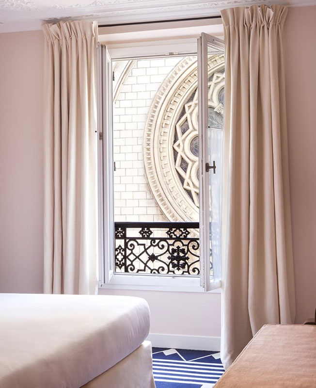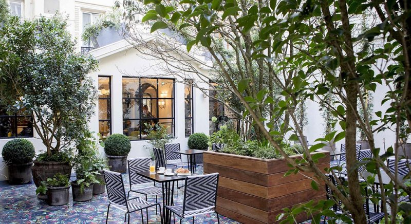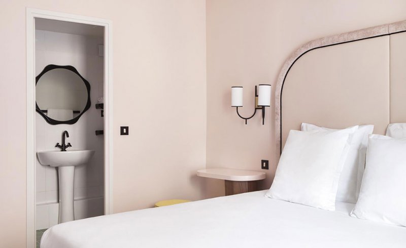 Парижский отель Bienvenue спроектирован Хлоей Негр (Chloe Negre). Это бывшая гостиница Villa Fenelon, которая находится в оживленном квартале всего в нескольких шагах от Больших бульваров. Отельер Адриен Глоаген, открывший Panache Hotel и Paradis Hotel, верен своему стилю. Модный и уютный отель Bienvenue предлагает спокойствие в нежных тонах и среди зеленых растений. Название говорит само за себя и переводится как «Добро пожаловать». Протеже Индии Мадави Хлоя Негр предложила интерьеры на основе двух разных концепций дизайна. «Город» — это современный дизайн в в изысканных, однотонных пастельных тонах, которые акцентируются яркими цветами и акцентами в стиле ар-деко. Бархатные изголовья, графические ковры и настенные бра спроектированы самой Хлоей Негр. Другая концепция называется «Сельская местность» — цветочный фон с ромашками на обоях и цветочными клумбами на занавесках. Яркий рисунок пола придумал художник Жюльен Коломбье, им украшен бар, двор и небольшой ресторан. Выпускница Школы Камондо ( Ecole Camondo) , Хлоя Негр четыре года проработала в студии Индии Мадави, а в 2014 году основала свою собственную архитектурную практику с желанием находится между дисциплинами: архитектуры интерьера, дизайна мебели и сценографии. • От 120 евро.