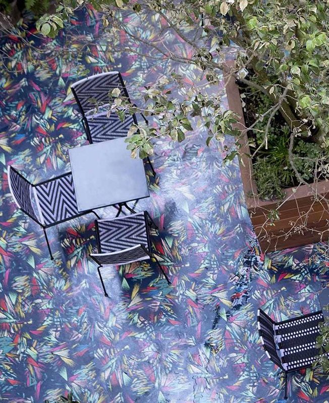 Другая концепция называется «Сельская местность» — цветочный фон с ромашками на обоях и цветочными клумбами на занавесках. Яркий рисунок пола придумал художник Жюльен Коломбье, им украшен бар, двор и небольшой ресторан.