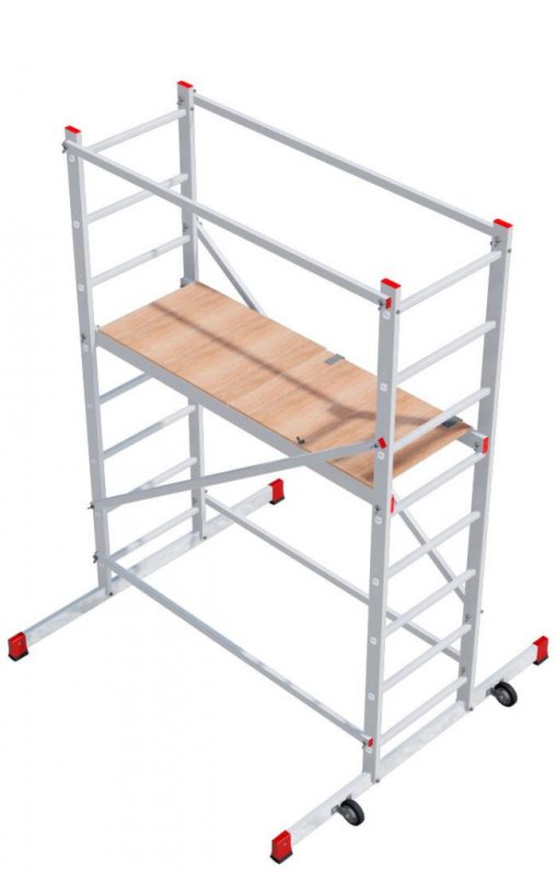По сути, передвижные строительные подмости представляют собой разновидность вышки туры с облегченной конструкцией. Благодаря своей мобильности, они могут свободно использоваться в помещении. Подходят для ремонтно-отделочных и реставрационных работ. Все элементы конструкции выполнены из замкнутых профилей и прочных металлических труб. Подъем работник осуществляет с торца по перекладинам.