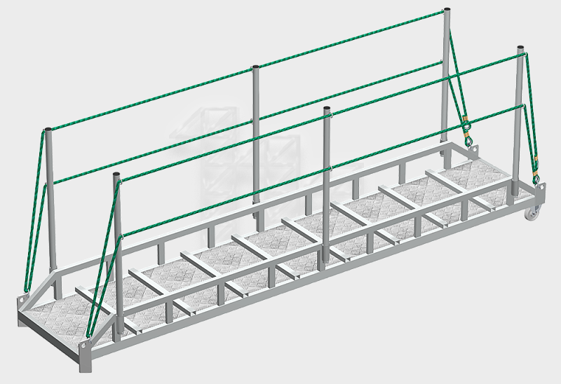 Передвижные строительные подмости — приспособление, без которого невозможно представить ряд монтажных и строительных работ. Основная их задача заключается в перемещении груза по площадке. С помощью строительных подмостей можно создать безопасные и комфортные условия труда. В современном строительном направлении передвижные подмости стали неотъемлемой частью процесса. Они позволяют поднимать грузы различного назначения на высоту до 15 м. Передвижные подмости имеют свои преимущества: мобильность; маневренность; простота сборки и эксплуатации; соответствие ГОСТам; компактность; безопасность в применении. Используются строительные подмости передвижные при строительных и ремонтных работах в частных зданий, в торговых центрах или в других коммерческих сооружениях. Перед тем, как выбрать приспособление стоит обязательно учесть, для каких видов работ будет применяться. Правильный выбор обеспечит и безопасность рабочих, и поможет сократить сроки на выполнение поставленных заданий. По сути, передвижные строительные подмости представляют собой разновидность вышки туры с облегченной конструкцией. Благодаря своей мобильности, они могут свободно использоваться в помещении. Подходят для ремонтно-отделочных и реставрационных работ. Все элементы конструкции выполнены из замкнутых профилей и прочных металлических труб. Подъем работник осуществляет с торца по перекладинам. Установка таких приспособлений осуществляется на твердой поверхности с уклоном не больше полутора градусов. С целью предотвращения передвижения подмостей задается блокировка колес. Жесткость конструкции обеспечивают диагональные лучи на главной секции. Чтобы увеличить величину рабочего настила используются дополнительные секции. Безопасность рабочей конструкции будет зависеть от того, правильно ли она зафиксирована. Передвижные строительные подмости оборудуются системой блокирования колес, которой необходимо не забывать пользоваться при выполнении работ. Настил и ступени следует постоянно очищать от остатков рабочего материала, мусора или грязи. Прослужит строительное приспособление долго, если эксплуатировать его в соответствии с руководством. Судовые трапы для безопасного перемещения людей Для безопасного входа к рабочим площадкам и на судно используются судовые трапы. Они в строительной сфере нашли свое применение. Доступ в некоторые места возможно обеспечить только с помощью такого приспособления. Наклонные сходные конструкции монтируются под определенным углом и перед входом предполагают размеры заданных площадок. В зависимости от модификации снабжаются поручнями с одной стороны или с обеих. Судовые трапы служат для перехода из одного места в другое, где нет возможности использовать обычную лестницу. Иногда их выбирают для доступа в шахты, цистерны, грузовые трюмы. Изготавливаются зачастую из металлических основ, на ступенях которых предусмотрено наличие квадратного прутка с целью противоскольжения.