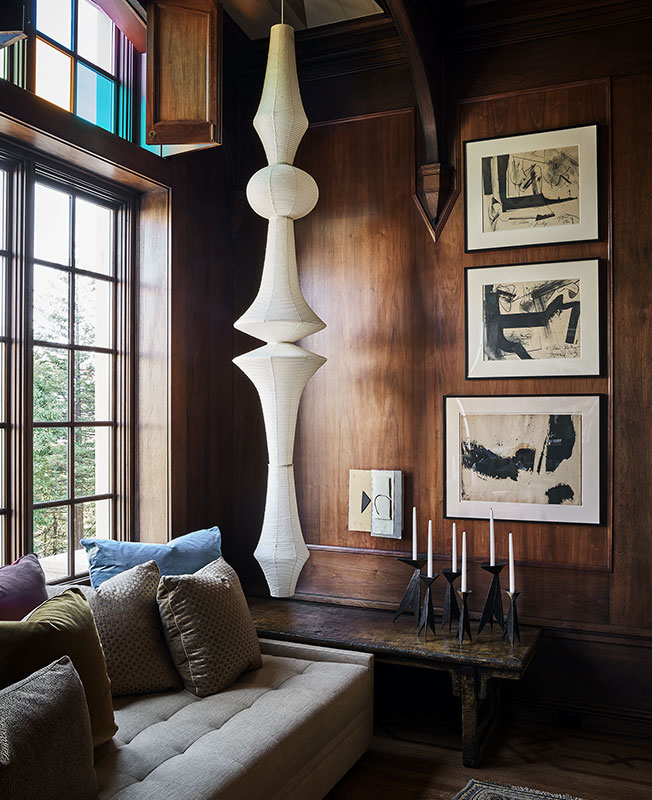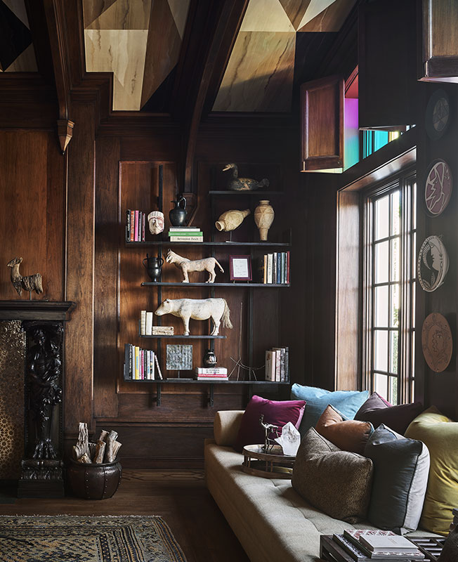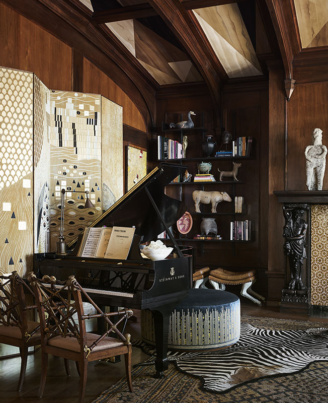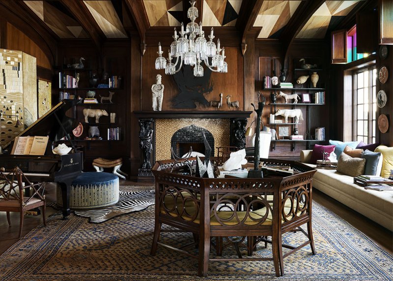Например, ушакский шерстяной ковер или столик авторства Эдвина Лаченса — великого британского архитектора. Антиквариат сочетается с современными и выполненными на заказ предметами. Камин обрел новый образ в изготовленной специально для проекта шестигранной марокканской плитке Monique de la Plaza. Произведения искусства поставила галерея Foster Gwin.