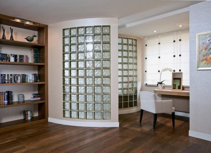 Небольшие размеры стеклоблоков позволяют возводить стены причудливых округлых форм. Луксферы хорошо изолируют акустически и термически, что позволяет использовать их также на наружных стенах здания. Стена из стеклоблоков устойчива к механическим повреждениям.
