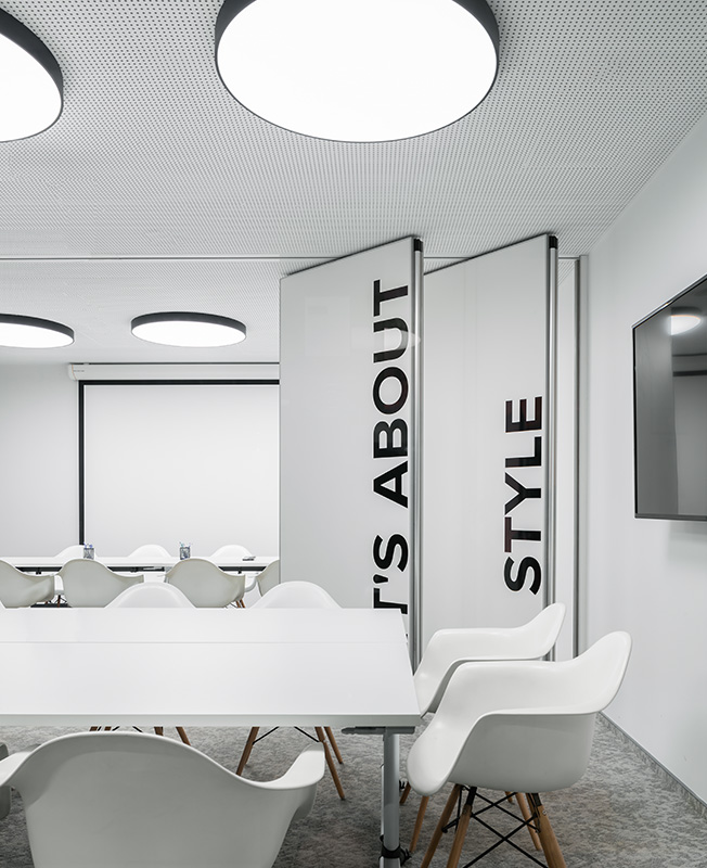 Авторы оформили интерьеры а в едином стиле — лаконичном, сдержанном. Превалирующая черно-белая гамма подчеркивает принадлежность компании к fashion-индустрии – недаром кутюрье обычно выходят на поклон в total black.