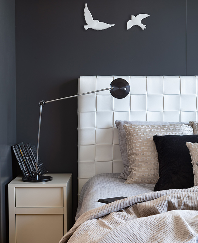Во всех помещениях использованы три основных цвета: белый, черный и бежевый в разных оттенках: с примесью серого, с добавлением рыжего. В каждой спальне ввели по одному дополнительному цвету. Декоративные акценты — предметы из черной керамики.