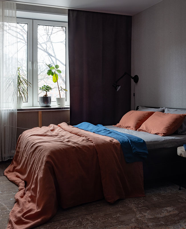 Спальня. В комнате продолжается цветовая палитра общественной зоны. Терракотовые оттенки поддержаны синими акцентами. nonehttps://www.instagram.com/anna_elina_design/https://www.facebook.com/profile.php?id=100001257830642none