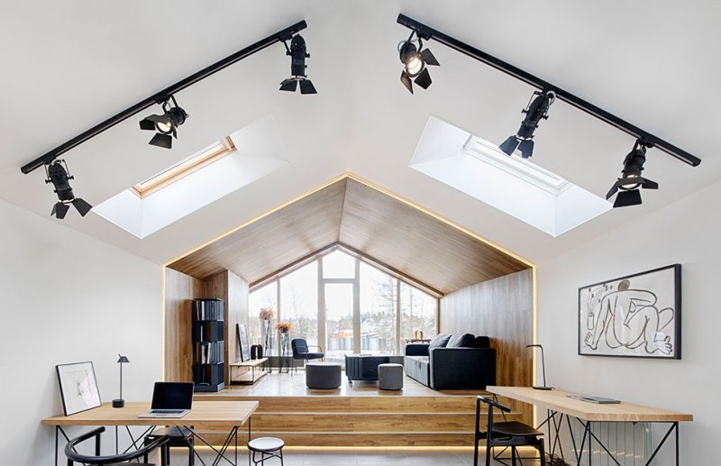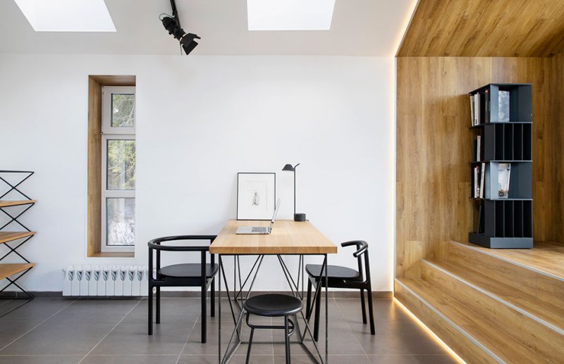 Решение «домик в домике» также было обусловлено и конструкционными особенностями здания с разным уровнем потолков на нижнем этаже. Также архитекторы предусмотрели выход на эксплуатируемую ловлю, где можно насладиться окружающими пейзажами. nonehttps://www.instagram.com/ab20.io/https://www.facebook.com/ARCHBURO2.0/https://ab20.io/ru