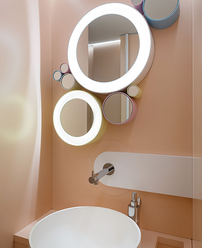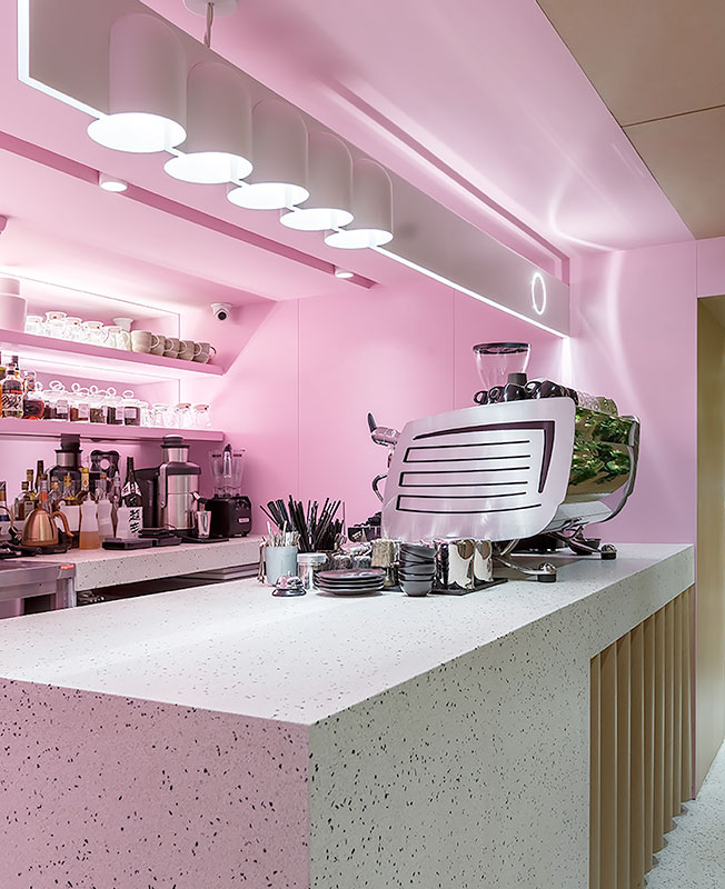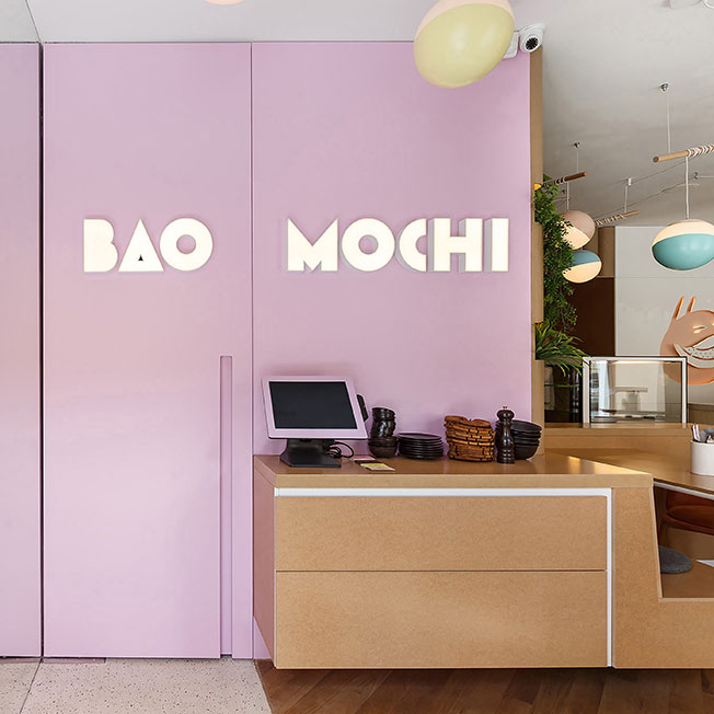В основе меню Bao Mochi — азиатская кухня: в первую очередь, паровые булочки бао и японские пирожные моти из рисовой муки. Эти же блюда, давшие кафе название, легли в основу планировочного решения для пространства площадью 188 кв. метров. Есть зал Bao с открытым горячим цехом и зал Mochi, где внимание привлекают ниши с разноцветными полусферами, напоминающими пирожные моти.