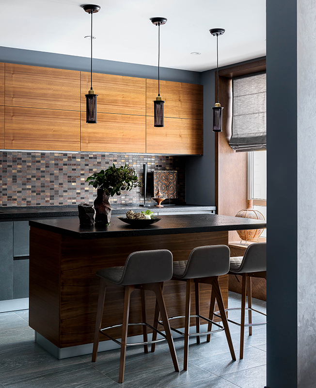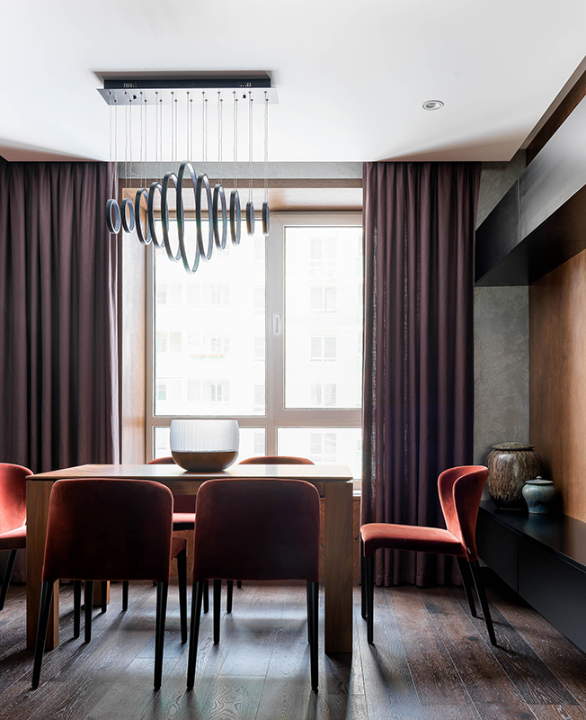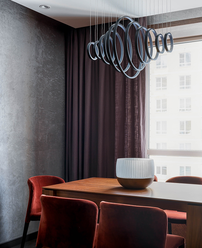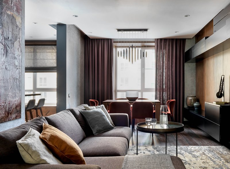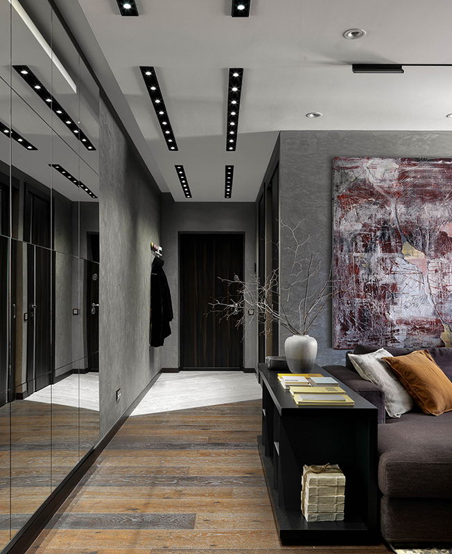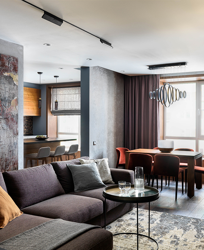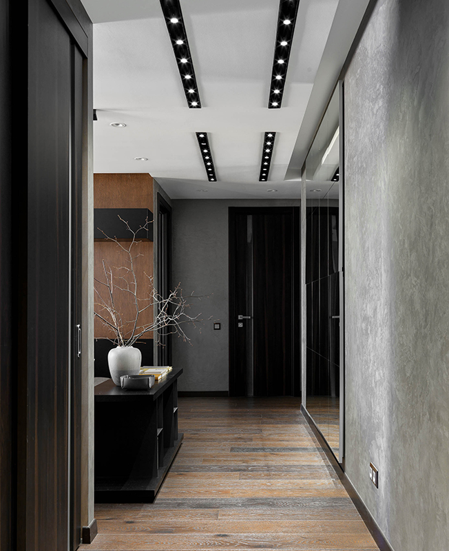 Хозяин квартиры — молодой человек, который много работает и часто путешествует. С его родителями Анастасия уже сотрудничала прежде и отмечает, что вкусы в этой семье схожи. «К нам было очень доверительное отношение в плане результата, — говорит она. — Предложение по концепции и стилю согласовали с первого раза. Основным пожеланием было использование более темной цветовой гаммы, а остальное оставили на наше усмотрение, главное — чтобы получилось удобно и красиво».
