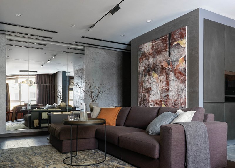 Зона гостиной. Диван, Alberta Salotti. Картина Кирилла Басалаева, Art Brut Moscow.