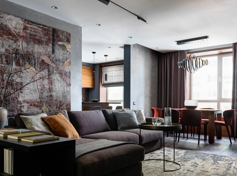 Зона гостиной. Диван, Alberta Salotti. Картина Кирилла Басалаева, Art Brut Moscow. Дизайнер Анастасия Ковальчук оформила интерьер трехкомнатной квартиры площадью 93 кв. метров в Коммунарке, Новая Москва. Предполагается, что в будущем это жилье холостяка превратится в семейную квартиру. Хозяин квартиры — молодой человек, который много работает и часто путешествует. С его родителями Анастасия уже сотрудничала прежде и отмечает, что вкусы в этой семье схожи. «К нам было очень доверительное отношение в плане результата, — говорит она. — Предложение по концепции и стилю согласовали с первого раза. Основным пожеланием было использование более темной цветовой гаммы, а остальное оставили на наше усмотрение, главное — чтобы получилось удобно и красиво». Зона гостиной-столовой. Диван, Alberta Salotti. Обеденный стол и стулья, Alf DaFre. Ковер, Dovlet House. Картина Кирилла Басалаева, Art Brut Moscow. nonehttps://www.instagram.com/kovalchuk.design/nonehttp://kovalchuk-interior.com Дизайнеру нужно было не просто создать комфортное пространство для хозяина квартиры, но и учесть возможность трансформации жилья, если в будущем семья вырастет, поэтому гостевая спальня задумана как потенциальная детская. Также одной из важных задач было устроить просторную общественную зону, где можно принимать гостей и разместить всю большую семью заказчика. Здесь постарались обойтись без очевидных перегородок и провели перепланировку. Зона столовой. Обеденный стол и стулья, Alf DaFre. Подвесной светильник, SWG. Зона столовой. Обеденный стол и стулья, Alf DaFre. Подвесной светильник, SWG. Зона столовой. Обеденный стол и стулья, Alf DaFre. Подвесной светильник, SWG. «Мы могли адаптировать пространство под себя и воспользовались этим, — рассказывает дизайнер. — В результате кухню мы разместили в дальней части от входа и объединили ее с гостиной. Хотелось бы расширить ванную и мастер-спальню, но расположение комнат этого не позволяло». Зона гостиной. Диван, Alberta Salotti. Тумба, Alf DaFre. Ковер, Dovlet House. Картина Кирилла Басалаева, Art Brut Moscow. Зона гостиной-столовой. Диван, Alberta Salotti. Тумба, обеденный стол и стулья, Alf DaFre. Ковер, Dovlet House. Картина Кирилла Басалаева, Art Brut Moscow. В основе палитры — темные цвета, как и хотел заказчик. По мнению дизайнера, они создают теплое ощущение. «В интерьере использована единая цветовая гамма, в основном, оттенки серого, коричневого, земляного цветов. Даже декор мы не стали использовать слишком яркий, все должно быть гармонично». Кухня. Вазы, Native Ceramic. Аксессуары, Moon Stores. Кухня. Вазы, Native Ceramic. Аксессуары, Moon Stores. Кухня. Вазы, Native Ceramic. Аксессуары, Moon Stores. Кухня. Вазы, Native Ceramic. Аксессуары, Moon Stores. В приоритете были натуральные материалы: древесина, камень, керамика. Практически во всех комнатах присутствует отделка шпоном дуба, которая «собирает» интерьер: это и оконные откосы, и решетки, закрывающие встроенные в подоконную часть радиаторы отопления в кухне-гостиной. По мнению Анастасии, отделка древесиной добавляет благородства, выглядит тепло и уютно. Зона гостиной-столовой. Диван, Alberta Salotti. Обеденный стол и стулья, Alf DaFre. Ковер, Dovlet House. Картина Кирилла Басалаева, Art Brut Moscow. Вид из гостиной на прихожую. Диван, Alberta Salotti. Тумба, Alf DaFre. «Люблю использовать текстурные материалы. Всю зону прихожей и гостиной мы оформили декоративной штукатуркой. Продолжили эту идею на фасадах кухни. Они керамические, с хаотичной натуральной текстурой. И мне, и клиенту нр