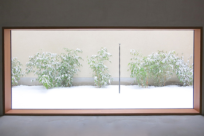 Вид на внутренний дворик. За окном скульптура Bird Column, Лейко Икемура, 2011. Бронза.