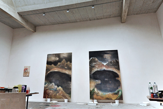 На стенах работы Лейко Икемуры Berlin Horizon. Темпера, масло, джут. 2012-2013 гг.