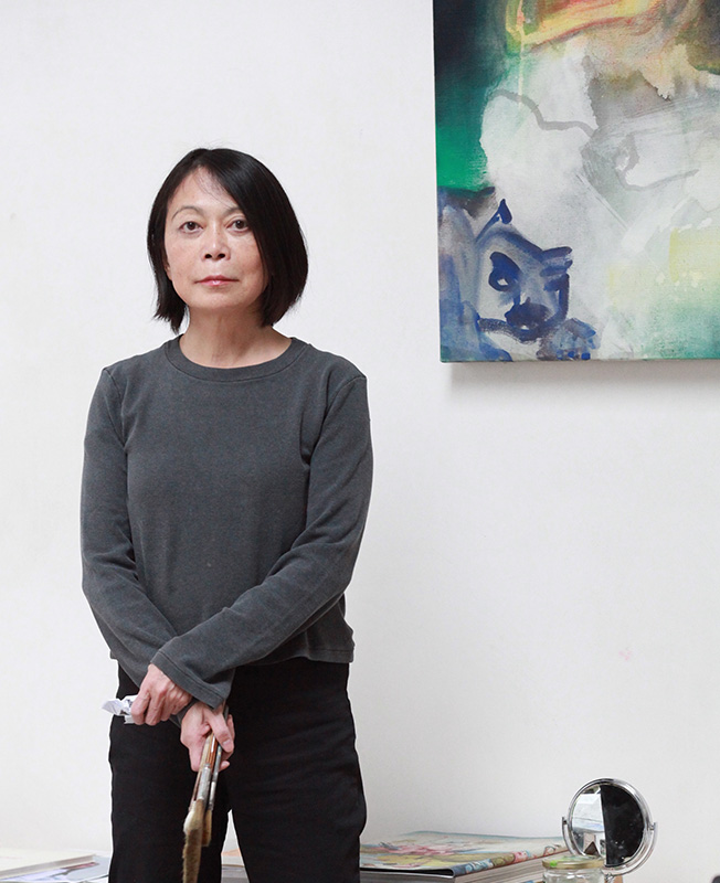 В центре — живописная работа Лейко Икемуры Shinju no onna, 2010. Масло, холст.