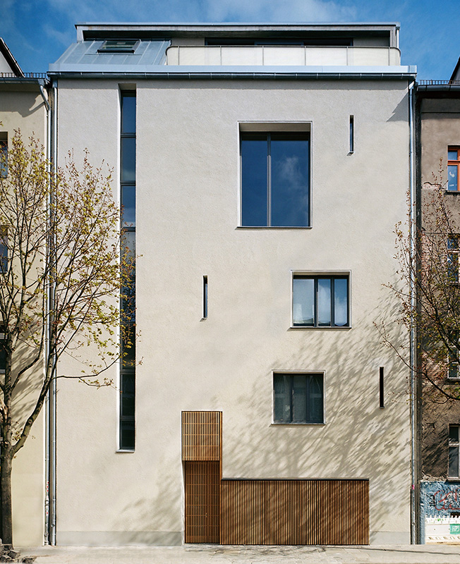 Входной холл. На стене фото Teatro Olimpico Andrea Palladio Vicenza, автор — Кандида Хёфер. Кресло Munich, диз. Зауербрух Хуттон для ClassiCon. Лейко Икемура пригласила в свой дом-ателье в Берлине. Автор проекта, архитектор Филипп фон Матт, рассказал, каким должен быть дом художника. Лейко Икемура — человек мира. Родилась в Японии, училась в Испании, Швейцарии и Германии. Сегодня живет в Берлине, в доме-студии, который создал ее муж, швейцарский архитектор Филипп фон Матт. Лейко Икемура. «Дом художника не репрезентативное место, к нему не подходят буржуазные стандарты «красивой жизни», — говорит Филипп. — Прежде всего, архитектура не должна конкурировать с искусством. От проектировщика требуется скромность: ему следует отказаться от желания произвести эффект, но сконцентрироваться на основных категориях архитектуры: пропорции, массе, свете, материале, точности исполнения. Критерии, которые служат основой для дома художника, идеально совпадают с теми, что применяются при создании музея. Поверхности оставлены в естественной фактуре и цвете цемента, они не лишены характера, в них есть индивидуальность и выразительность без излишней громкости. Первый этаж. Количество и размер оконных проемов необходимо тщательно высчитать. Свет как яд. Передозировка не только отравляет глаз, но и вредит сохранности искусства. Стены задействованы, служат для экспозиции. Важно предусмотреть возможность менять работы. Чтобы избежать ощущения временности, картины следует крепить прямо на стены, а не на шины для развески. Поэтому структура стен должна быть равномерной и обладать достаточной толщиной. В центре — живописная работа Лейко Икемуры Shinju no onna, 2010. Масло, холст. Мастерская и жилые пространства решены более мягко, чем входная зона. Слева на стене абстракция, автор — Вальтер Вопава, 2010. Холст, акрил. Справа работа Лейко Икемуры Berlin Horizon I, 2011. Темпера, масло, джут. Вокруг стола дизайна Филиппа фон Матта стулья Арне Якобсена. На стенах работы Лейко Икемуры Berlin Horizon. Темпера, масло, джут. 2012-2013 гг. Мастерская на третьем этаже, куда проникает чистый приглушенный дневной свет. «Архитектура для искусства не считается хорошей, если она препятствует его свободному просмотру». Поверхности отходят на второй план, хотя и не лишены характера: мы оставили их в естественном цвете цемента. Напольных покрытий избегали, лишь в прихожей цементный пол отшлифован. Простая, скромная штукатурка создает на стенах живописный эффект сфумато. Фасад дома в Берлине. Лестница выполнена из бетона и покрыта мелкозернистой штукатуркой из цемента и извести. Следы опалубки создают выразительный рисунок и ритм. От декора отказались, чтобы усилить естественные выразительные свойства материалов. Хотя я не считаю орнамент преступлением. Скорее наоборот. Единственная роскошь в доме — масштаб помещений. При этом они все равно соразмерны человеку. Ванная комната. Простота — ключевой принцип и на техническом уровне. Чтобы создать помещения для сосредоточенной работы и созерцания, необходимо ограничить количество видимой электротехники. Помещения полностью отапливаются системой «теплый пол», которая поддерживается экологичными солнечными коллекторами. Они же поставляют горячую воду. На каждом уровне есть доступ к пространству outdoor: к террасе на крыше, к балкону, саду во внутреннем дворе. Вид на внутренни