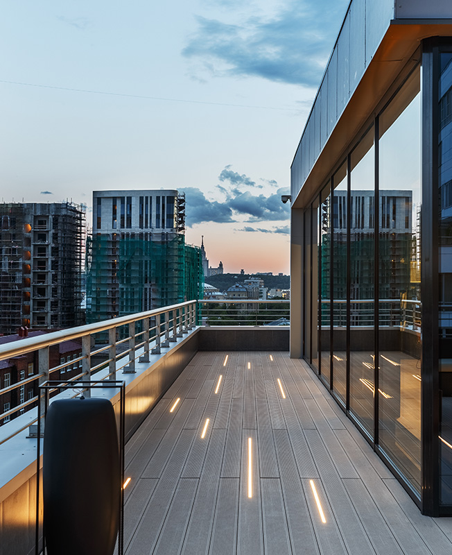 В террасную доску встроена подсветка.