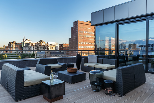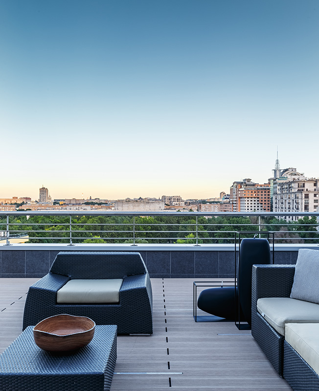На открытой террасе установили модульную мебель Atmosphera.