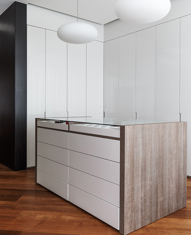 Гардеробная. Корпусную мебель изготовила компания Olivieri. Cветильники Vibia.