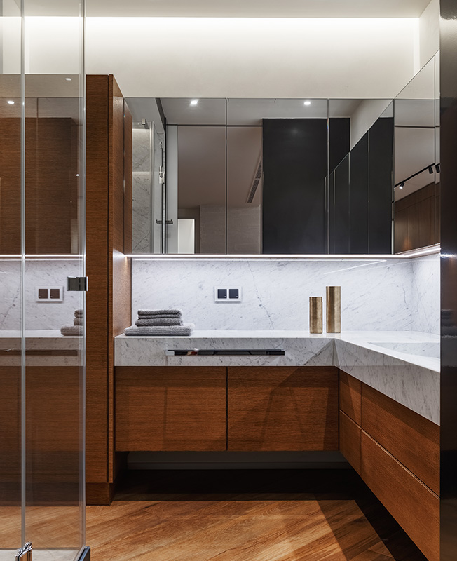 Молодожены обратились в студию Artechnology, которую возглавляет Георгий Ахвледиани. Проектом руководил архитектор Тимур Шарипов, вместе с ним работали светодизайнер Сергей Назаров и дизайнер Ольга Истомина — она занималась подбором мебели.