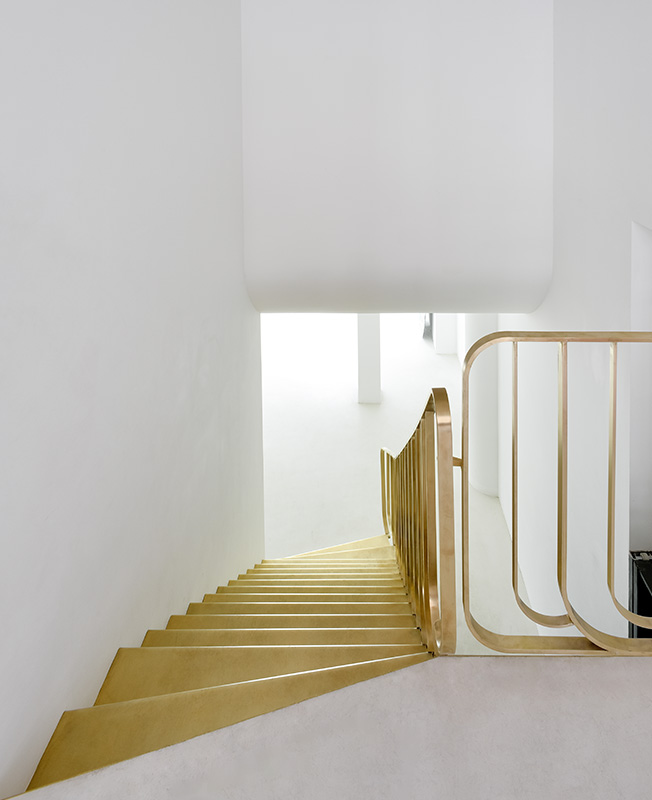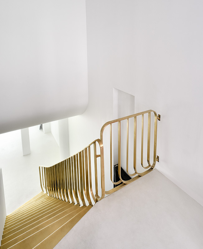 Лестничные ограждения из латуни добавляют в интерьер бывшей типографии уместную ноту гламура.