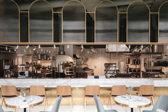 Двухэтажный ресторан включает неформальную кофейню, общие и приватные обеденные залы, две открытые кухни, бар и секретную детскую комнату — на радость занятым родителям.