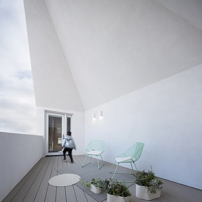 Дом площадью 204 кв. метра рассчитан на одну семью. Его главная особенность — крыша, образованная группой из шести двускатных крыш, которые формируют необычный внешний вид и диктуют способ организации внутреннего пространства. Это попытка переосмыслить «свободный план» Ле Корбюзье и концепцию Raumplan Альдофа Лооса, согласно которой при проектировании нарушается горизонтальная связь отдельных этажей, а внутреннее пространство разделяется на отдельные кубы с различной высотой потолка.