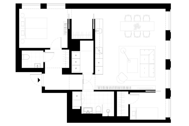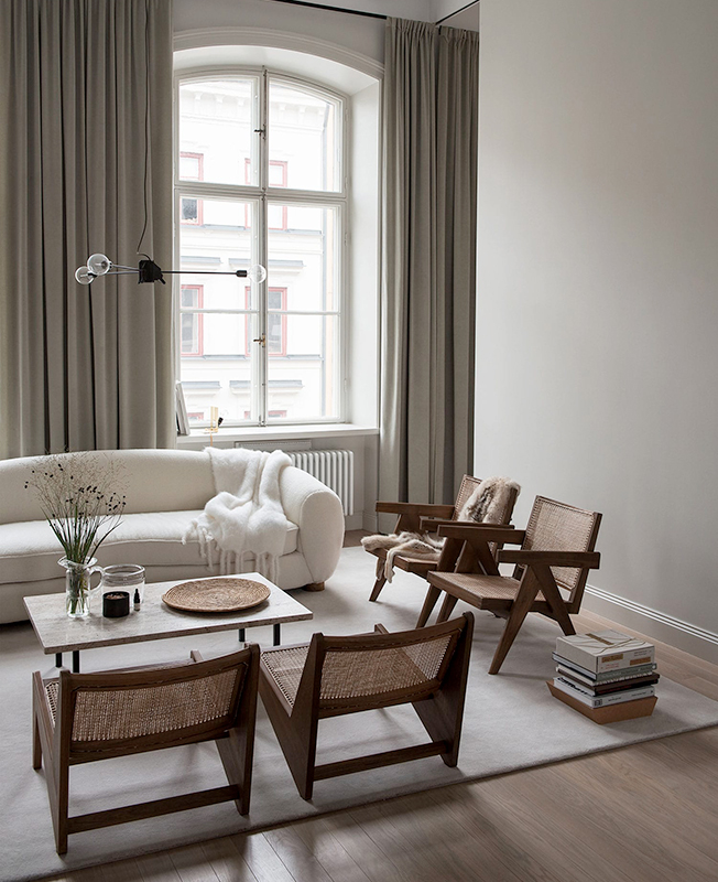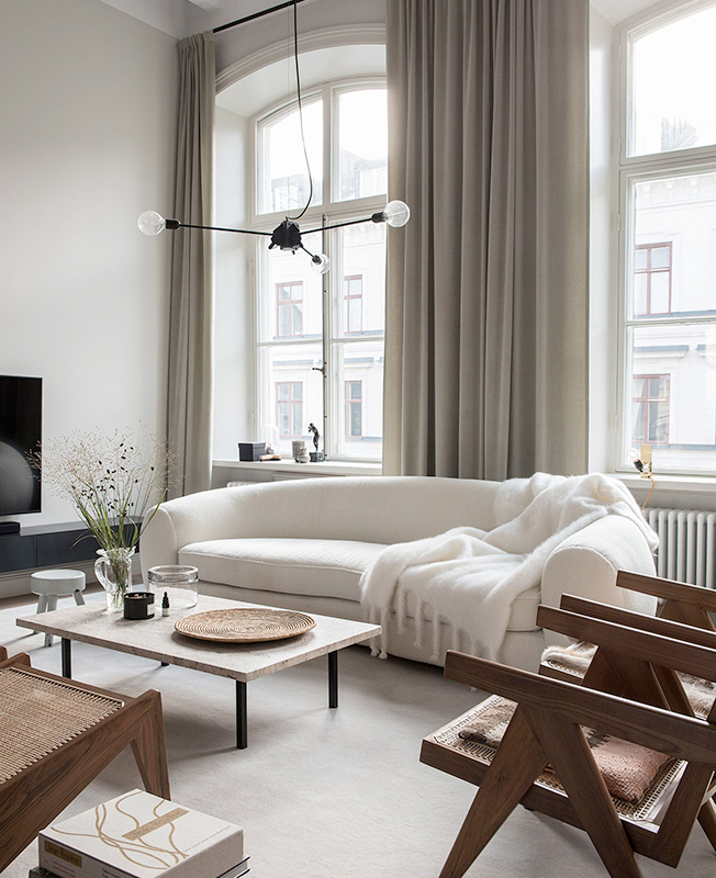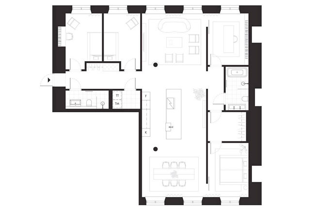 Андреас Мартин-Лёф, Andreas Martin-Lof Arkitekter, превратил бывшие лаборатории Фармацевтического института в Стокгольме в светлые апартаменты с историческими деталями. Здание бывшего Фармацевтического института принадлежит Стокгольмскому университету и находится под защитой как памятник архитектуры с 1935 года. Его преобразование — часть проекта по модернизации жилых помещений в трех зданиях, бывших частью Технического университета. Построенное шведским архитектором Густавом Далом в 1896 году, здание Фармацевтического института было переименовано в Лицей и сейчас включает в себя 39 квартир с потолками высотой 4,3 метра. Шесть из них — лофты, пространство которых расширили за счет чердака. Работая над проектом, архитекторы сохранили оригинальные детали, включая фасады, входы и лестницы. Интерьеры просторных квартир сохраняют исторические элементы из их университетского прошлого. Почти в каждой квартире две отдельные спальни с ванными комнатами, а также главная спальня и кабинет. В центре — объединенное пространство кухни-столовой-гостиной под эффектным сводчатым потолком. Оригинальные высокие окна, спроектированные Далем, были отреставрированы. Полупрозрачные шторы на тонких черных металлических карнизах обеспечивают обилие естественного света, не перетягивая на себя внимание. В восстановленных стенных нишах, изначально построенных для книжных полок, сейчас разместились деревянные стеллажи и письменные столы. Шкафы для хранения на кухне напоминают вытяжные шкафы, используемые для научных экспериментов, а форма кухонного острова с мраморной столешницей, дополненного табуретами по дизайну Пьера Жаннере, отсылает к лабораторному столу. Палитра была выбрана в тон фасаду здания — он нейтрально-светлый, с деревянной дверью, черным навесом и лестничными перилами. Отсюда оттенки слоновой кости и черный мрамор, дополненные белоснежными и графичными черными деталями. Строгую гамму смягчает деревянная мебель, усиливающая сходство со старыми лабораториями. Декором служат изготовленные на заказ зеркала по дизайну Андреаса Мартина-Лёфа и светильники, напоминающие горелки Бунзена. Помимо интерьером квартир студия отреставрировала и общественные зоны. Чтобы воссоздать облик фойе и лестниц, заказали известняк из того же карьера, который использовался первоначально. Существующие колонны и фасад были перекрашены, а во внутреннем дворе разбит сквер.
