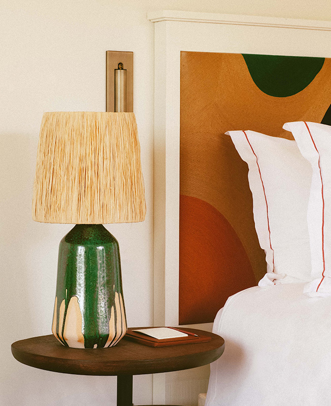 В каждом номере есть собственный сад с открытой гостиной. Некоторые имеют уникальный декор: элегантное изголовье из гобелена ручной работы или сделанная на заказ керамическая лампа Charles Zana. Повсюду вы найдете светлые оттенки, натуральный камень, ковку, лен, дерево и раттан — радостное сочетание текстур и материалов и солнечную атмосферу.