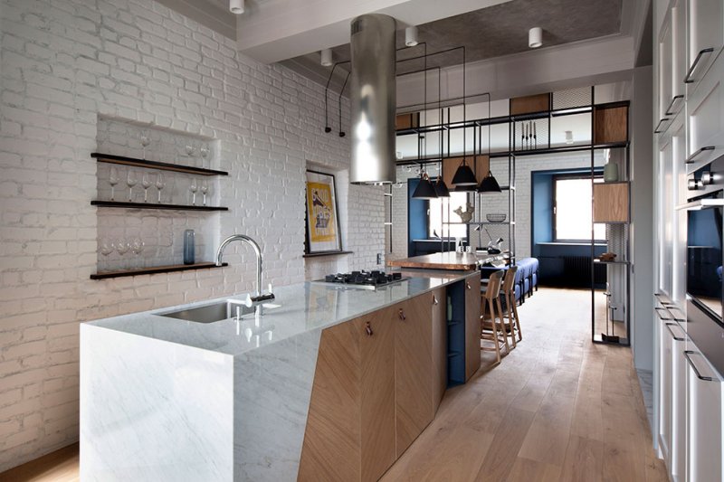 «Мы хотели отразить в интерьере возраст здания, видели это пространство в спокойном минималистичном стиле. Несмотря на то, что заказчик любит лофт, нам удалось прийти к компромиссу использовав разные стилистики и мебель».