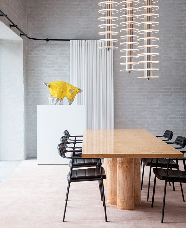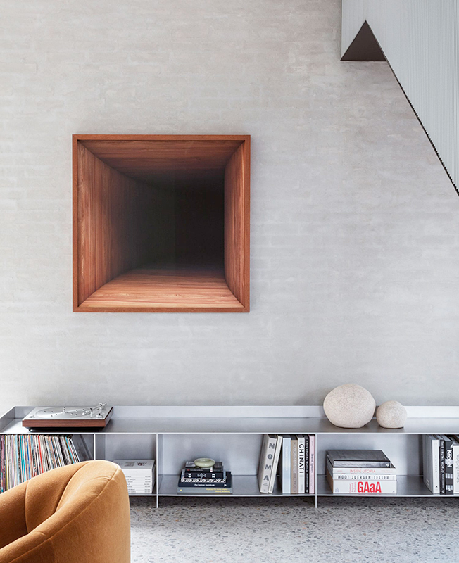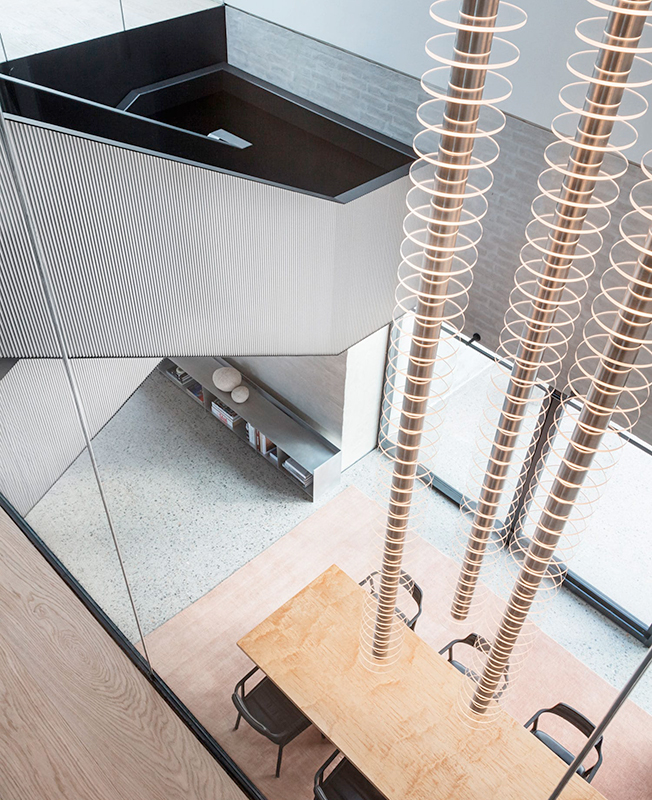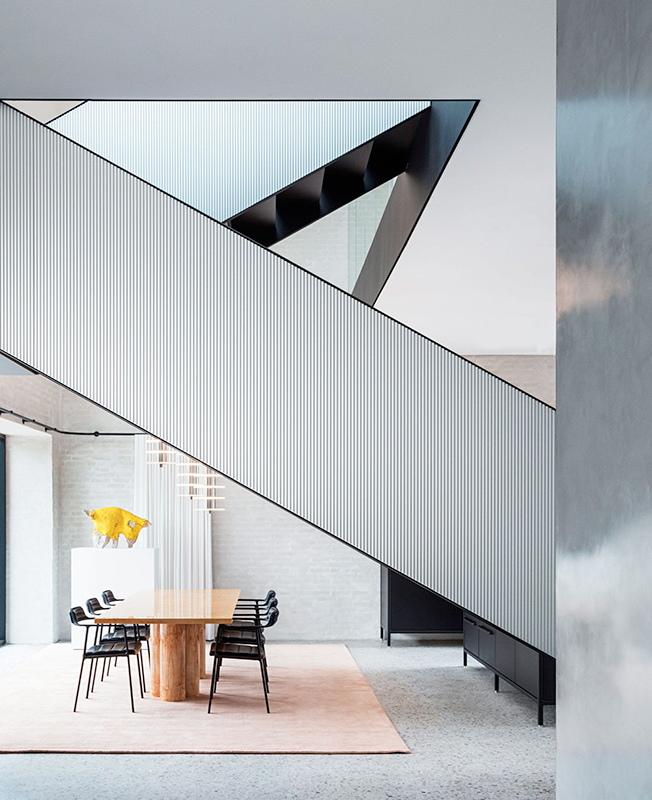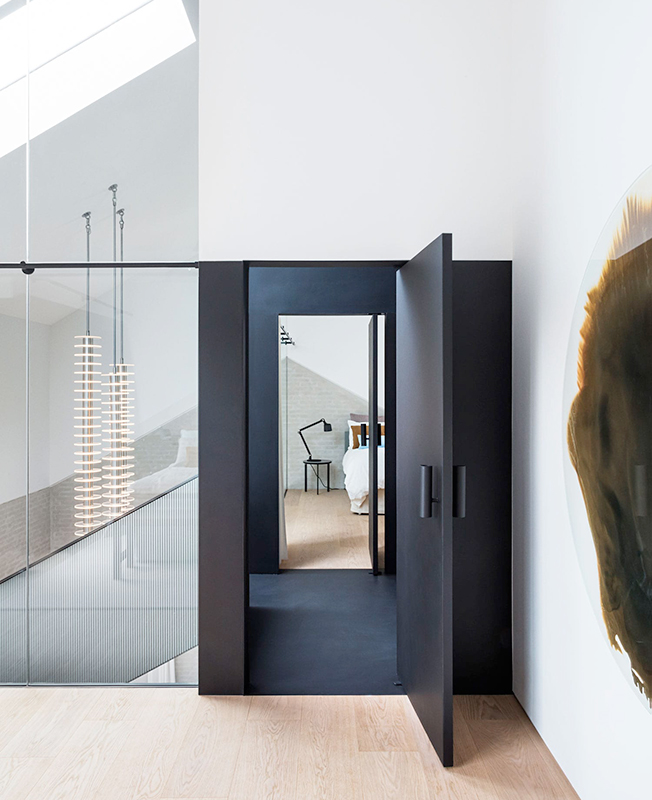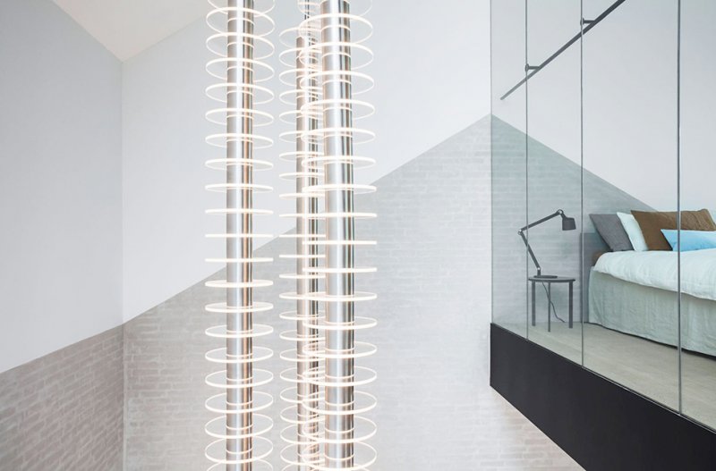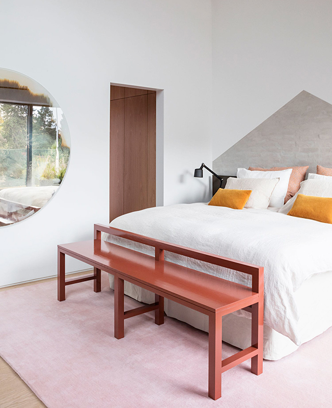 «Я хотел добавить индивидуальность, комфорт и эстетику частной резиденции, — объясняет Дэвид Тульструп, — чтобы люди чувствовали себя как дома». Две спальни, расположенные на L-образном втором уровне, обращены друг к другу, стеклянные панели служат стенами атриума. «Можно смотреть из одной спальни в другую, в них происходит обмен естественным светом. В некотором смысле это провокация и архитектурное предложение для гибкой современной жизни, где люди могут контролировать свой уровень конфиденциальности», — говорит архитектор.