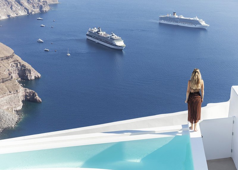 Греческий остров Санторини — одно из самых романтичных мест на земле. Здесь модно устраивать свадьбы и проводить медовый месяц. Остров славится пейзажами, невероятно яркими закатами и пляжами с вулканическим песком. Не меньше впечатляет архитектура. Старые белые дома с синими крышами, лепящиеся на скалах, известны по многочисленным фотографиям в инстаграме, и в жизни они оказываются такими же «инстаграмными».