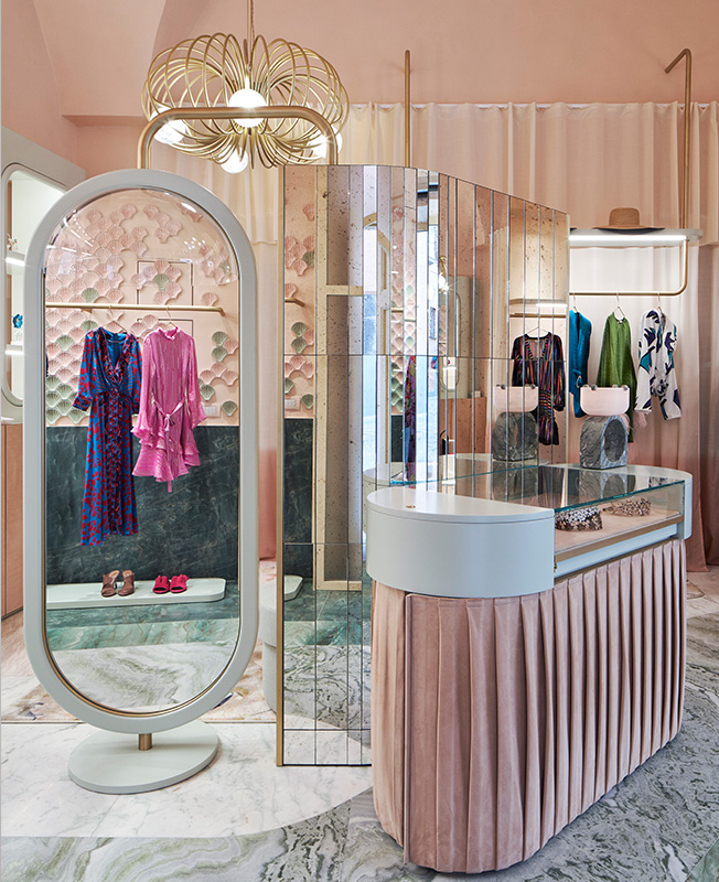 «Я представила себе интимное и женственное место с особой атмосферой, «комнату чудес» для одежды и аксессуаров, приобретенных в результате внимательного поиска. Я хотела, чтобы мой «волшебный шкаф» стал реальностью», — говорит Мариэлла Авино, управляющий директор.