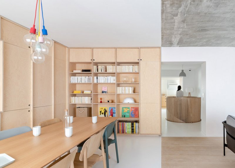 Архитекторы студии Sabo Project обновили дуплекс в пятом округе Парижа. Главный материал интерьера — березовая фанера.
