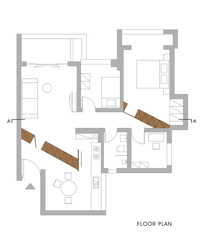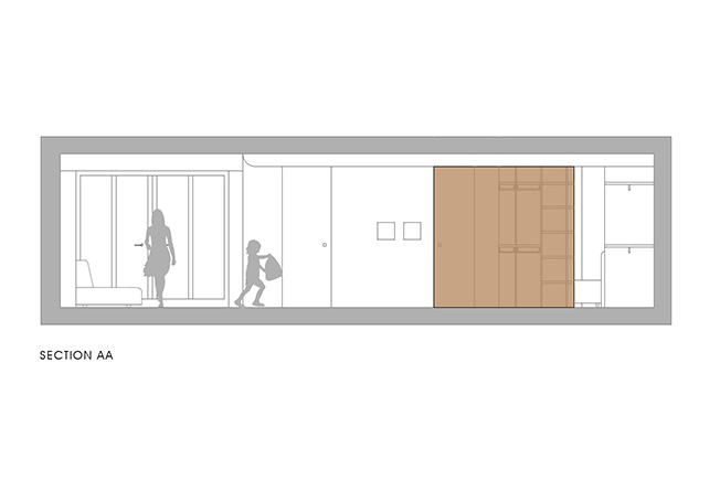 Дизайнер Чжан Юфан, студия GE Design, спроектировал квартиру в китайском городе Шэньчжэнь. Объекту площадью 85 кв. метров автор дал название A Folding Residence. Как рассказывает сам дизайнер, в работе над проектом его вдохновляли евклидова геометрия и знаменитый фильм Кристофера Нолана «Начало» (Inсeption): «Я не знаю точно, существует параллельный мир или нет, но если он все-таки есть — абсолютно ли он параллелен нашему с вами миру?». Дом находится в Шэньчжэне, на улице Бантьян, одном из самых динамично развивающихся районов южнокитайского мегаполиса. Поскольку цены на недвижимость здесь высоки, квартира оказалась компактной, но «многофункциональной», иными словами, была разделена на множество мелких помещений. «Клиент просил создать уникальное жилье, однако эта уникальность не должна препятствовать комфортной жизни семьи из трех человек. Нам предстояло улучшить качество жизни в границах тесных комнат, — рассказывает автор проекта. Клиент оказал нам полное доверие, и это стало решающим фактором, почему мы пришли к идее «параллельного мира» и вращательной симметрии в столь компактном пространстве. Хотя мы не можем свободно перемещаться по параллельному миру, но у нас есть возможность наблюдать его. В самом большом помещении мы установили под точно высчитанным углом систему шкафов и зеркал, она же стала стартовой точкой для раздвижной дверь в кухню. Это не только изменило отношения между гостиной, кухней и столовой, но также существенно расширило пространство и добавило значительное количество непрямого света. Раздвижная дверь перемещается, отражаясь в зеркалах — реальный мир взаимодействует с параллельным. Другую подобную систему «шкафы зеркала» мы разместили в конце корридора, превратив его его из тесного тупика в красивое cветлое место с перспективой. Выходящую в коридор ванную отделали оранжевой плиткой. Когда оранжевый свет проникает в коридор, то где где бы вы ни находились, вас манит это теплое яркое пятно».