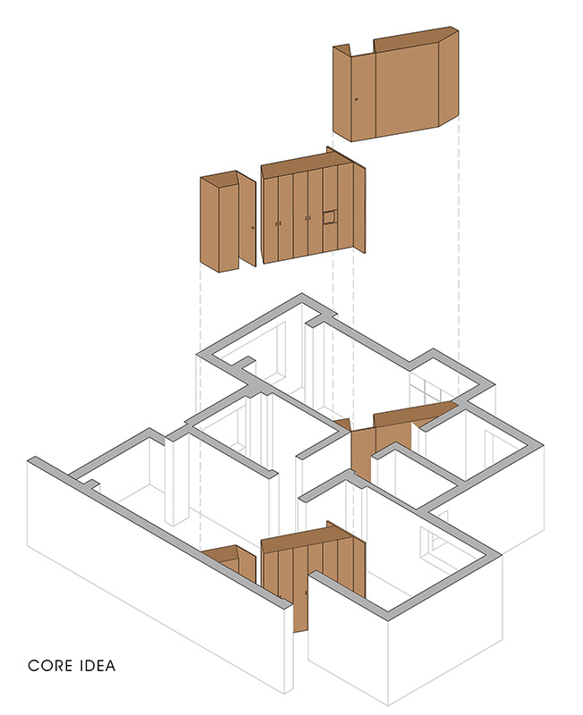 «Клиент просил создать уникальное жилье, однако эта уникальность не должна препятствовать комфортной жизни семьи из трех человек. Нам предстояло улучшить качество жизни в границах тесных комнат, — рассказывает автор проекта.