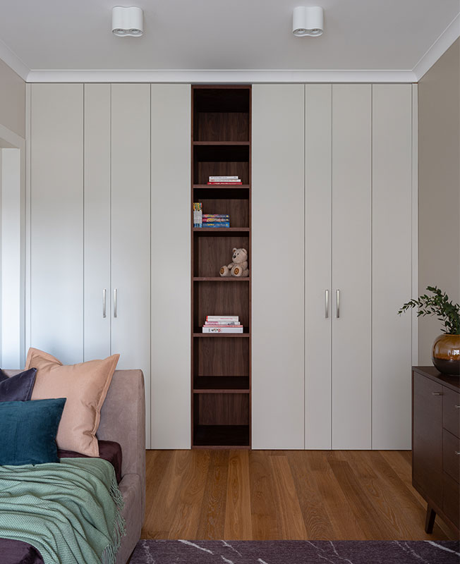 Фрагмент детской. Корпусная мебель выполнена на заказ по эскизам дизайнера, ALF. Кровать, фабрика Infiniti.