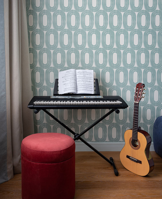 Фрагмент зоны для занятий музыкой в детской комнате.