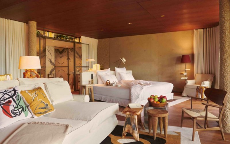 В оформлении французский дизайнер стремился создать интерьеры с народными акцентами. Контраст отражен в миске стекла, металла и дерева с толстой бетонной структурой. Внутри комнат-коконов площадью от 30 до 80 кв. метров материалы — кожа, необработанный бетон, массив дерева и полированный мрамор — сталкиваются в шикарной и непринужденной атмосфере.