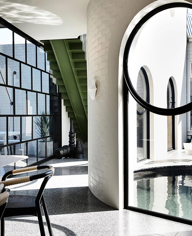 Архитектурная практика Kennedy Nolan была основана 20 лет назад. Студия в Мельбурне создает проекты, которые выигрывают профессиональные премии и украшают глянцевые издания. Кажется, во всем, что они делают, будь-то частная резиденция или общественное здание, есть немного магии. В эпоху, когда журналы, интернет и социальные сети наводнены однотипным дизайном, редко можно встретить проект, который заставит взглянуть на него ни один раз. Проект, сложный, богатый, с неповторимой индивидуальностью. Таков их Caroline House — перестроенный эдвардианский дом в Мельбурне, проект, который получил множество наград, включая австралийский приз Victorian Architecture Awards. Задняя часть дома с большим садом находится на южной стороне и датируется началом 1900-х годов. «Мы восстановили существующий дом и добавили павильон, который отделен от первоначального здания внутренним двором с бассейном», — рассказывают архитекторы. Клиент, которому нужен был семейный дом, настаивал на бассейне как на неотъемлимом элементе архитектуры. «Сложность интеграции бассейнов с каждым годом возрастает из-за новых правил, которые нарушают непосредственную близость к воде. Наш бассейн намеренно бросает вызов привычным понятиям — он круглый, компактный и, одновременно, глубокий, темный», — говорят архитекторы. Бассейн предназначен для круглогодичного использования. Непосредственная близость воды к внутреннему пространству также имеет драматический эффект, создавая иллюзию того, что край здания погружается в глубокие воды. «Эти эффекты являются преднамеренными и стремятся создать обстановку, поэтичную, вызывающую воспоминания». Несмотря на выразительный подход к дизайну, функциональные аспекты не были отстранены на второй план. Внутренний двор отвечает обычным требованиям, обеспечивая охлаждение летом. «Принципиально изогнутая стена скрывает многослойный и детально проработанный интерьер. Клиенты хотели, чтобы это жилье было доставлено выразительным, привлекательным и запоминающимся».