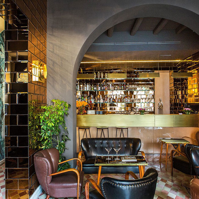 Зеркальные плитки, стены с патиной, современное искусство и итальянская мебель mid-century modern характеризуют обстановку бутик-отеля в римском палаццо XVII века. Габриэле Салини преобразил не просто историческую собственность, а свой семейный дом, которым владело ни одно поколение предков. Отремонтированный пятиэтажный отель G-Rough расположен в самом сердце Рима. Здание изначально было построено в 1600-х годах — его 400-летнюю историю демонстрируют оригинальные деревянные потолки и стены, покрытые многочисленными слоями краски. Эти исторические штрихи компенсируются современным искусством и мебелью середины XX века. Ванные комнаты отеля, кафе и лобби покрыты зеркальной плиткой из серебра и золота. «G» в названии этого небольшого отеля обозначает начальные буквы в именах его создателей: Габриэле Салини (Gabriele Salini) и его приятеля, отельера Эмануэле Гарочи (Emanuele Garosci), которые сумели соединить «историю, дизайн и немного фантазии». По словам Салини, шикарные номера и элегантный бар отеля напоминают настоящий музей дизайна. G-Rough перестроен в 2015 году, он включает в себя десять гостиничных люксов, каждый из которых оформлен индивидуально, но словно по одному сценарию. Все они стремятся соединить римскую историю и итальянский модернизм. Здесь есть вещи 1930–1950-х от Ико Паризи, Джо Понти, Паоло Венини, Гульельмо Ульриха, Освальдо Борсани, Пьеро Форназетти. Среди них — лампы Sputnik, кровати, отделанные пергаментом и тонконогие барные тележки. В нескольких гостиничных номерах есть место для отдыха с обеденным столом, стульями и большим диваном, который может служить дополнительной кроватью. Мини-кухня и холодильники Smeg создают комфорт обычной городской квартиры. В каждом люксе есть отдельная спальня и ванная комната. Обстановка номеров дополняется разнообразными предметами, которые предоставила сицилийская дизайнерская марка Leftover. На верхнем этаже G-Rough находятся два пентхауса, которые можно объединить. Пентхаусы выходят на террасы на крыше с живописным видом на мощеные улочки и дворцы Пьяцца Навона. • От 400 евро.