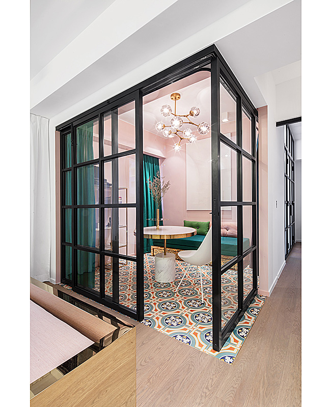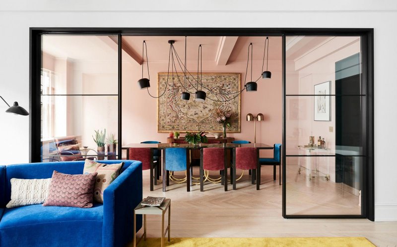 GCG Architectes: четыре цвета в парижской квартире. Две стеклянные перегородки делают османовскую анфиладу более легкой.