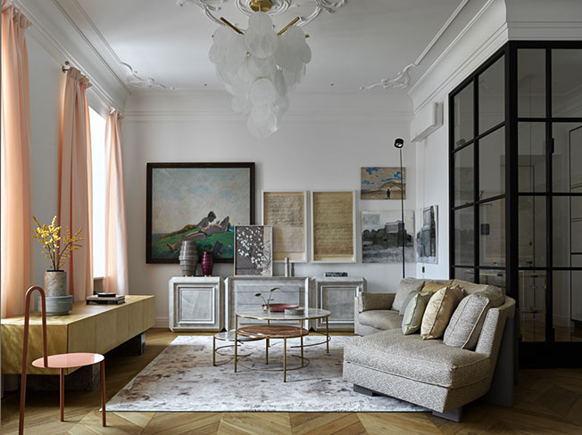 GCG Architectes: четыре цвета в парижской квартире. Две стеклянные перегородки делают османовскую анфиладу более легкой. «Арт-бюро 1/1»: семейная квартира art