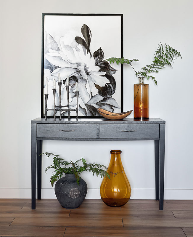 Интерьер создавался для семейной пары, которая ведет активный образ жизни и много путешествует. Хозяйка увлекается гончарным делом, а муж — охотой. Он регулярно выезжает в экспедиции со своей охотничьей собакой. При этом питомцев в семье двое — есть еще один пес, но не для охоты, скорее «для души».