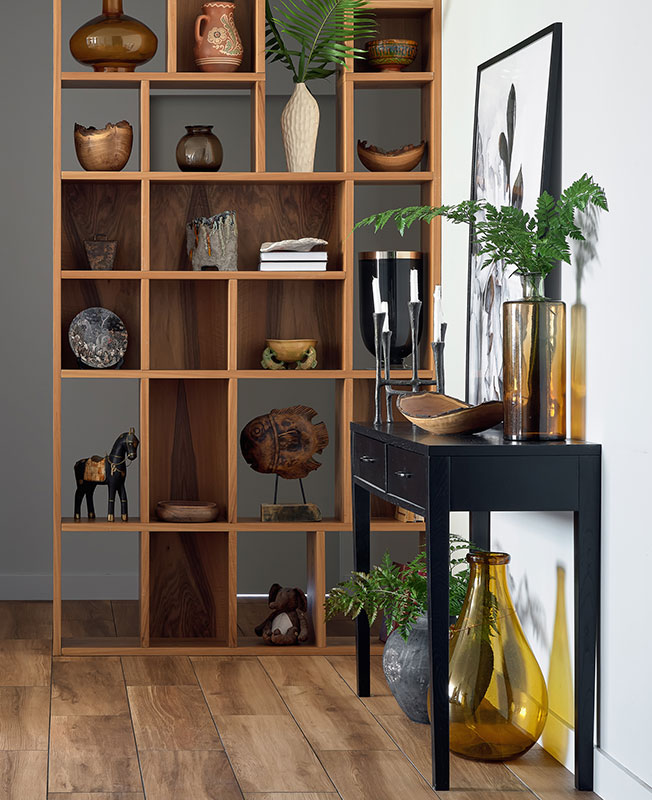 Фрагмент прихожей. Стеллаж изготовлен на заказ по эскизам авторов проекта.