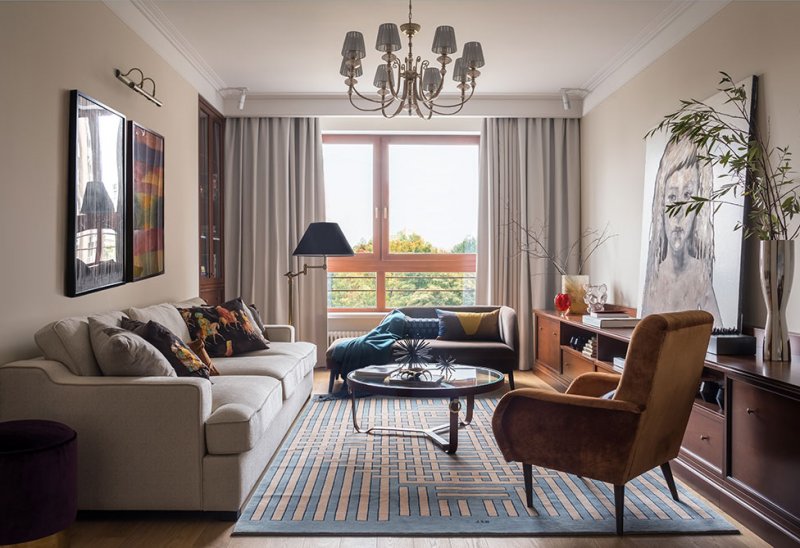 Фрагмент гостиной. Кресло, кушетка и подушки Loffilab. Ковер Jerome Botanic. Квартира 120 кв. метров в центре Москвы изначально обладала неудачной планировкой — значительную часть полезной площади занимал огромный холл. Заказчики, семья из Петербурга, хотели получить красивый, уютный и спокойный интерьер, который напоминал бы владельцам о северной столице. Проект вела Татьяна Левина, главный архитектор бюро Proektor. В концептуальном плане архитектор и заказчики остановились на современной классике. При этом Татьяна сосредоточилась на создании атмосферы при помощи искусства, постаралась избежать нагромождения деталей, например, лепнины. Фрагмент гостиной. Кресло Loffilab. Тумба изготовлена на заказ по эскизам автора проекта. На тумбе работа Aси Кузнецовой, галерея fine ART. Фрагмент гостиной. В квартире сформировали парадную гостиную, просторную кухню-столовую, кабинет, спальню, гардеробную, постирочную, ванную комнату и санузел. Также одной из основных задач для автора проекта было создать интерьер, который был бы практичен и легок в использовании. Гостиная. Кресло, кушетка и подушки Loffilab. Ковер Jerome Botanic. Тумба изготовлена на заказ по эскизам автора проекта. Люстра Maytoni. Краска Baldinini. На тумбе работа Aси Кузнецовой, галерея fine ART. Спальня. Прикроватная тумба изготовлена на заказ по эскизам автора проекта. Обои Khroma. На стене работа Дмитрия Шорина, галерея fine ART. Текстиль Zara Home. Из отделочных материалов отдали предпочтение паркетной доске и керамограниту. Стены выкрасили краской, в спальне и кабинете — оформили обоями. Фрагмент гостиной. Кушетка и подушки Loffilab. Кабинет. Письменный стол изготовлены на заказ по эскизам автора проекта. Ковер Jerome Botanic. Люстра Maytoni. Обои Chelsea Decor Wallpapers. На стене работа Дмитрия Шорина, галерея fine ART. Кухня изготовлена на заказ по эскизам автора проекта. Керамогранит Grespania. Краска Baldinini. Прихожая. Комод изготовлен на заказ по эскизам автора проекта. Люстра Maytoni. Краска Baldinini. На комоде работа Германа Виноградова. nonehttps://www.instagram.com/proektor.biz/https://www.facebook.com/profile.php?id=100004386306089http://proektor.biz/ Цветовую гамму выбрали максимально нейтральную, спокойную, располагающую к отдыху после насыщенного столичного дня. «Я остановилась на теплых янтарных оттенках и натуральной древесине. Завершили композицию аксессуары и предметы искусства», — рассказывает Татьяна. Гостевой санузел. Ванная комната. Тумба изготовлена на заказ по эскизам автора проекта. Керамогранит Grespania. Смесители Hansgrohe. Сантехника V