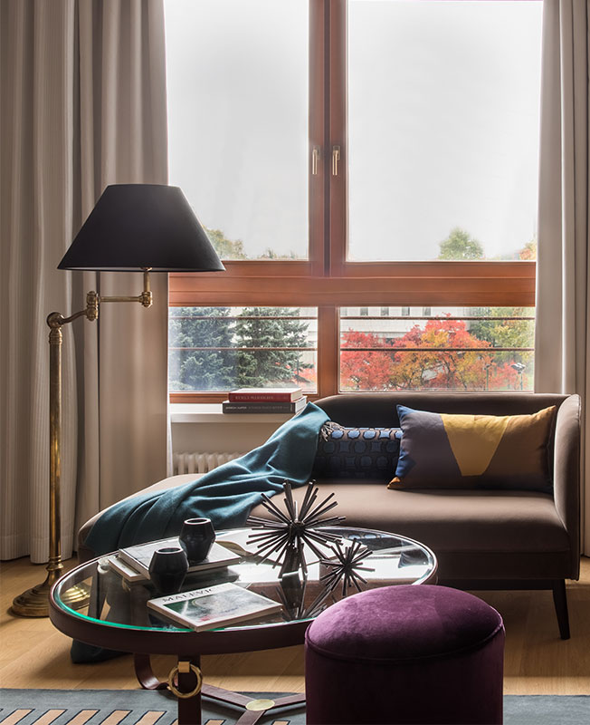 Цветовую гамму выбрали максимально нейтральную, спокойную, располагающую к отдыху после насыщенного столичного дня. «Я остановилась на теплых янтарных оттенках и натуральной древесине. Завершили композицию аксессуары и предметы искусства», — рассказывает Татьяна.