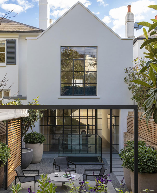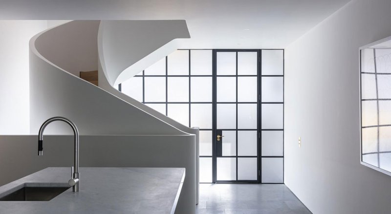 Майк Спинк (Mike Spink) и его команда cпроектировали минималистичный белый дом. Следуя своим традициям, британские архитекторы Spink (осн. в 1992) со страстью подошли к созданию современного утонченного архитектурного решения в этом доме в Западном Лондоне. Здесь гармонично сосуществуют белые матовые поверхности, металл и стекло.