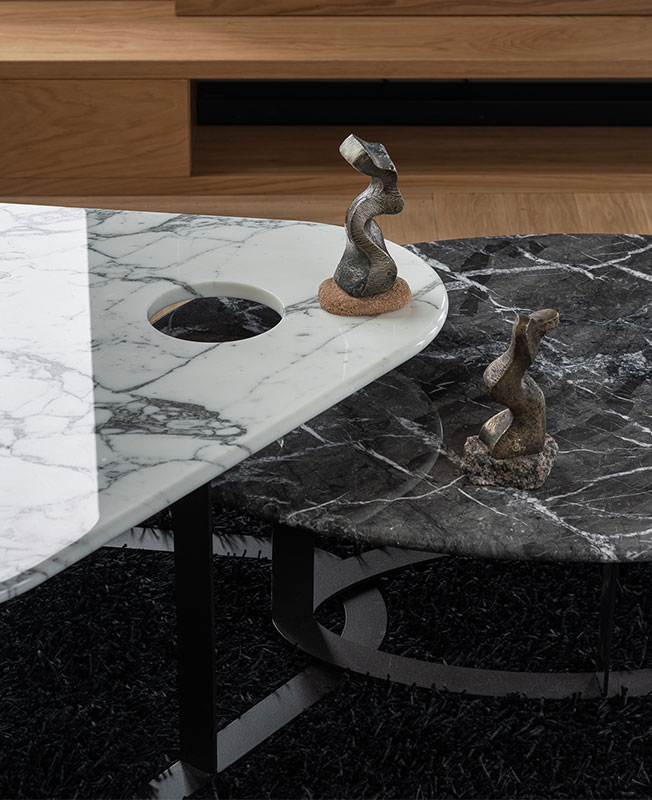 Акцентами интерьера стали предметы мебели европейских марок — Calligaris, Zanotta, Lema. Один из самых интересных объектов пространства — барный стул по дизайну Клаудио Сильвестрина для бренда Poltrona Frau с контрастными формами и материалами.