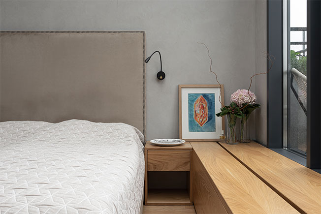 Спальня. Встроенная мебель изготовлена на заказ по эскизам автора проекта.
