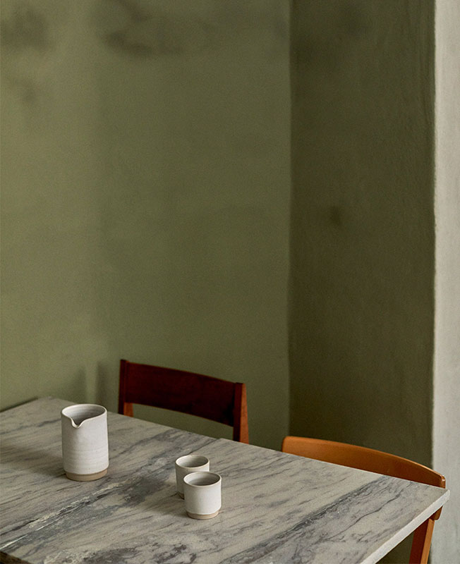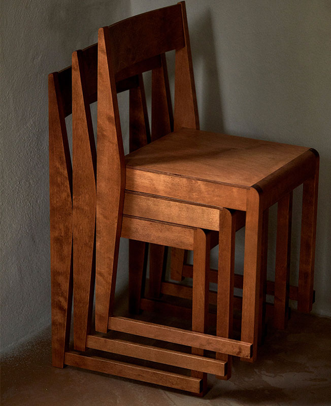 Помимо барных, студия Frama добавила в интерьер также обеденные стулья Chair 01 собственного изготовления, выкрашенные вручную в орехово-коричневый цвет для придания «пожитого» вида.
