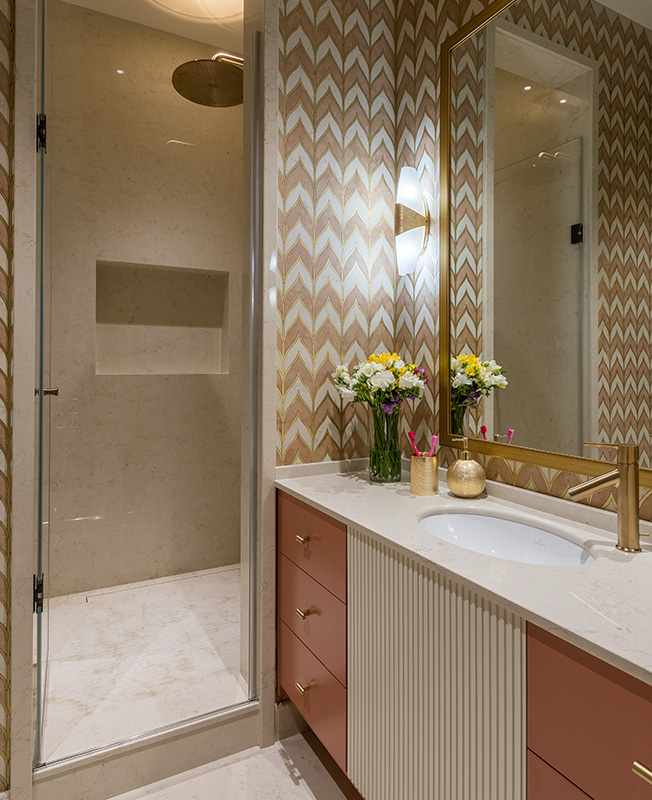 Фрагмент детского санузла. «В этом проекте я много экспериментировала с камнем и металлом», — вспоминает Анна Плотникова.